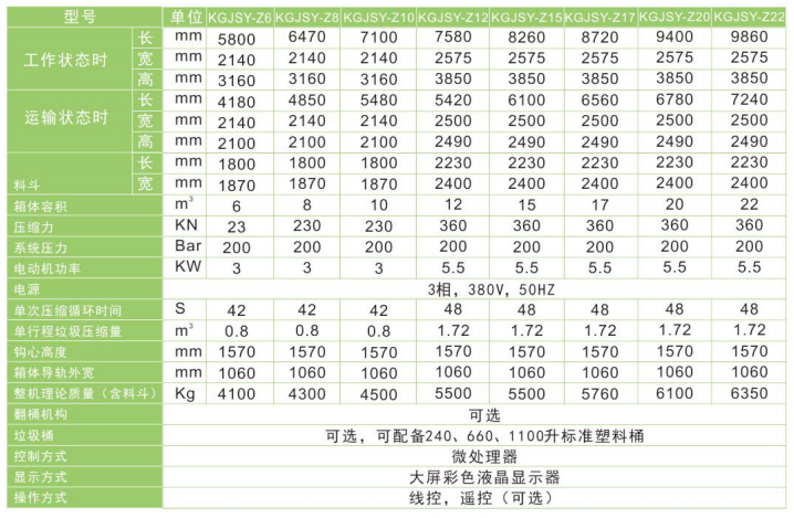 智能移動式壓縮垃圾站為壓縮機(jī)與箱體合二為一的連體機(jī),在垃圾收集、壓縮、轉(zhuǎn)運(yùn)過程中不分離,被譽(yù)為“移動垃圾處理專家”,整體設(shè)備智能化、故障率低,垃圾全部密封在垃圾箱內(nèi),不會對環(huán)境造成二次污染,簡單易處理。 智能移動式垃圾壓縮設(shè)備,目前國內(nèi)外小型城市生活垃圾站,垃圾處理方式基本上均采用壓縮方式,按壓縮力方向又分為水平壓縮和垂直壓縮兩種,智能移動式垃圾壓縮設(shè)備以其占地面積小、無土建要求、壓縮力大、設(shè)備布置緊湊等特點(diǎn)具有很大的市場影響力。技術(shù)參數(shù):